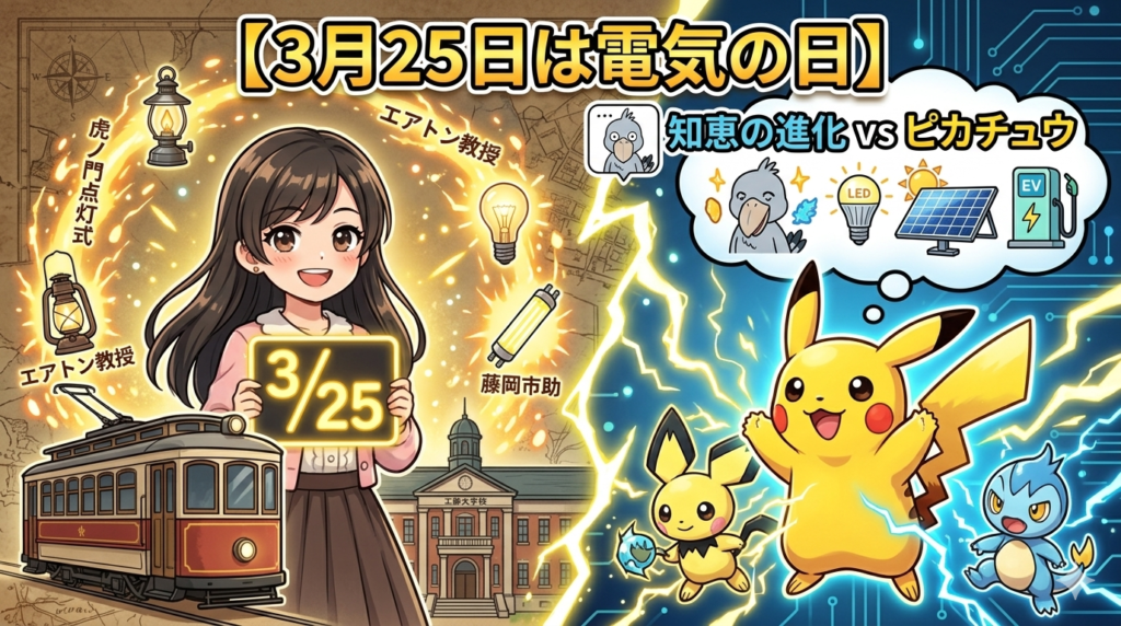 3月25日は何の日?それは「電気の日」です。日本初の電灯点灯から始まった、人类の光の進化を、娘が大好きなピカチュウと比べてみたら、人类のすごさが見えてきた話。 -