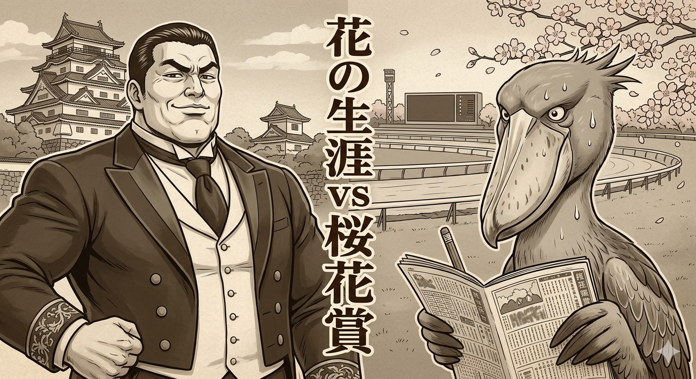 4月7日は大河ドラマ放送開始記念日!第1作『花の生涯』の主人公・井伊直弼の功罪を、初心者にも分かりやすく解説。毒舌な先輩と、歴史より「馬(桜花賞)」に夢中な巨漢の後輩Kが繰り広げる、爆笑必至の歴史(?)雑学記事。歴史の散りぎわと、馬券の散りぎわが今、交差する……! -